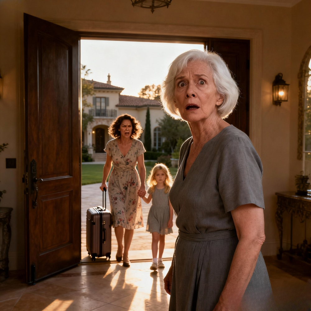 I let the curtain fall and angled the tablet on my dresser. Six camera feeds blinked alive—driveway, porch, living room, kitchen, hall, back door—each with a timestamp in the corner like little, permanent witnesses. I watched her climb my steps, heels ticking on old wood, her knuckles rap twice—hard enough to bruise the air.