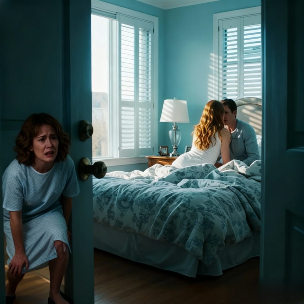 Through the narrow gap in the bedroom door, I saw them. Dallas—my husband, the man who’d cried beside my hospital bed—was there with a woman I’d never seen before. Her skin pale against the sheets, her hair a rich auburn that shimmered in the fading afternoon light. She was beautiful. Movie-star beautiful.