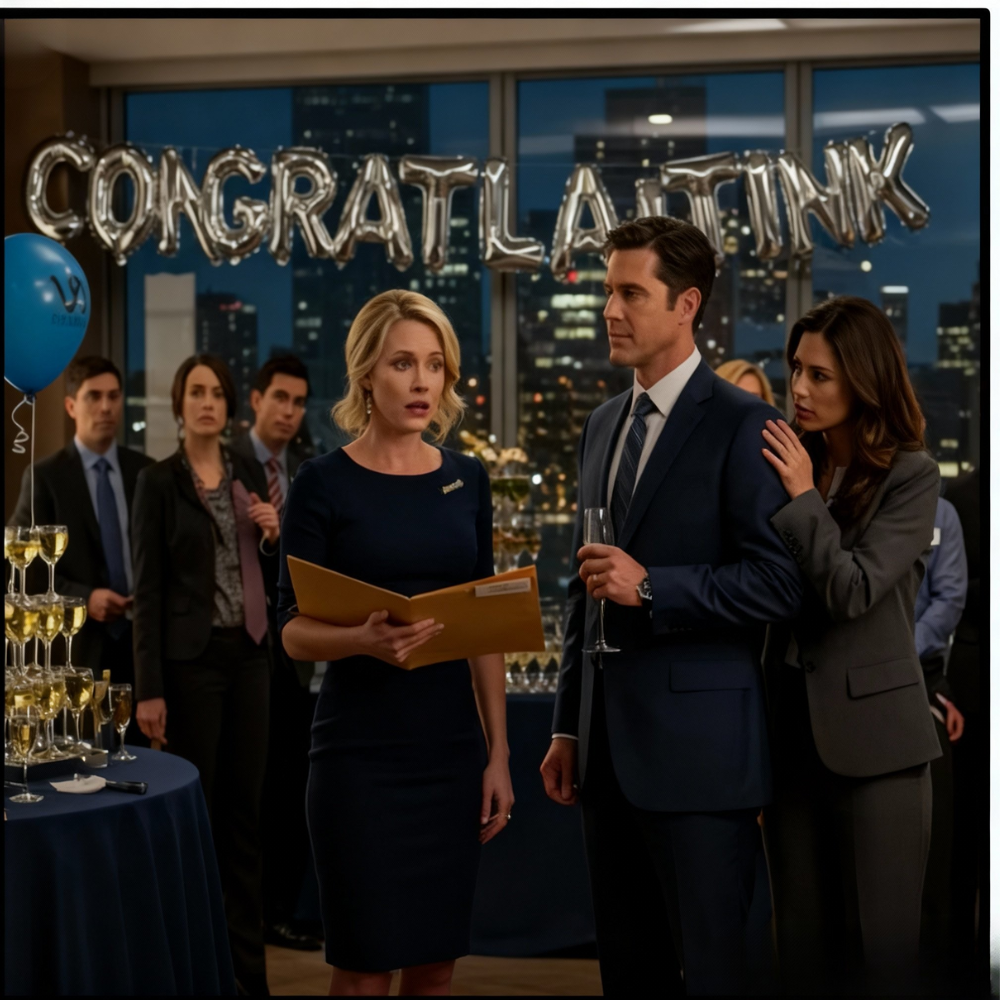 He slid a thick manila envelope across a white-linen table, the way a banker pushes a loan he knows you’ll sign. Champagne flutes chimed. Silver balloons read CONGRATULATIONS, FRANK! A skyline of glass in downtown Seattle threw back the November sunset like a wall of fire, and the new branch manager—the man I had built with two jobs and a thousand swallowed tears—smiled for his colleagues while handing me divorce papers.