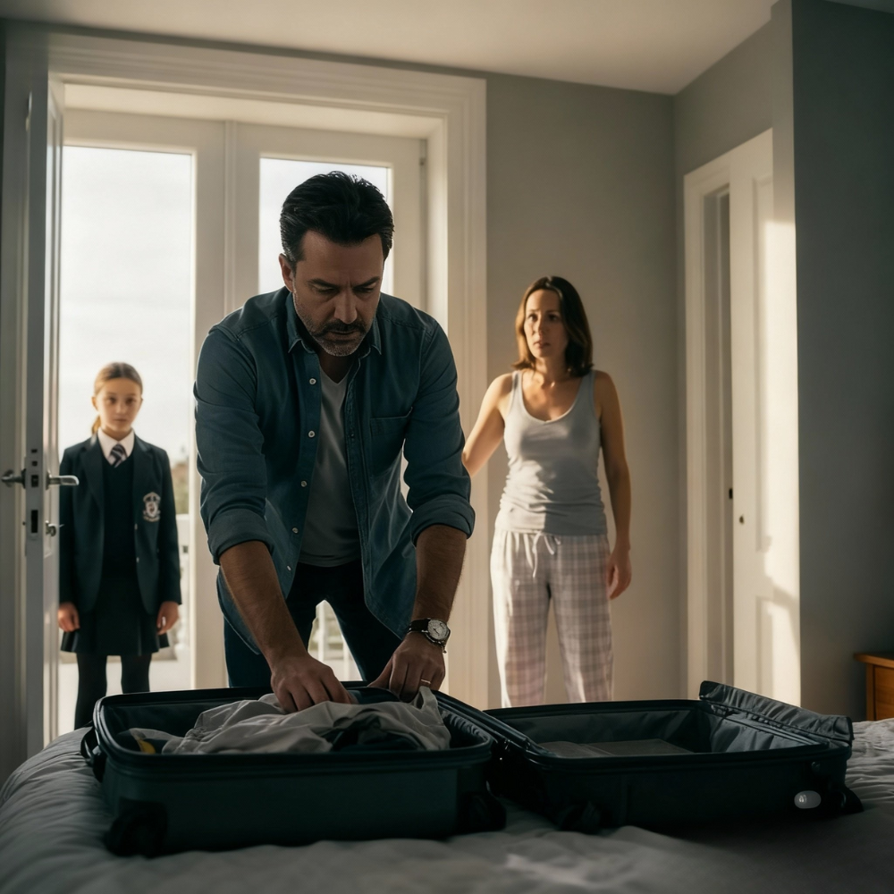 The morning sunlight hit the wedding photo just as he zipped the suitcase. For a second, the golden rays caught the frozen smile of the man I’d married twenty-two years ago — the man who was now shoving shirts into a bag like the house was on fire. The room smelled of aftershave and panic.
