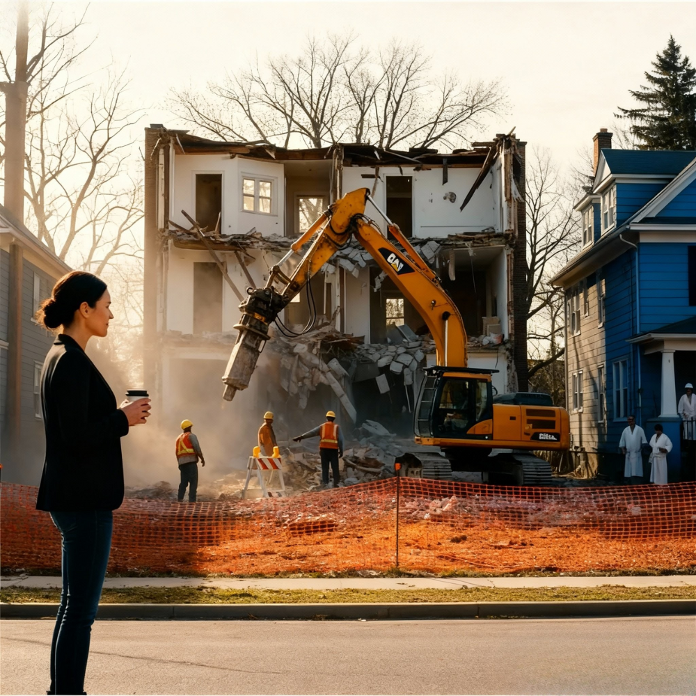 He nodded, called out orders to his crew. The machinery roared to life—excavators, loaders, compressors—a mechanical symphony of erasure. Neighbors began to appear on porches, robes clutched around them, eyes wide. Mrs. Kowalski from next door called out, “Hazel! What’s happening?”
