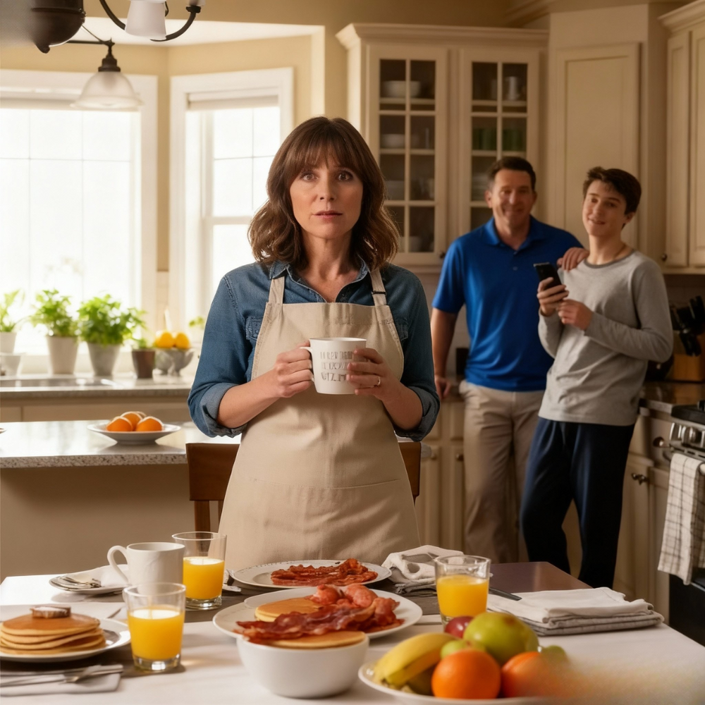 The mug flashed like a patrol car’s light in our suburban kitchen—white ceramic, black letters, an arresting truth printed in Helvetica: WORLD’S MOST POINTLESS WOMAN. It was Mother’s Day in America, the kind with grocery-store roses, “#Blessed” posts, and brunch lines snaking around diners where the coffee tastes like burnt hope. My husband Kevin, born and raised on Little League and sales quotas, slapped his knee and laughed so hard the maple cabinets rattled. Our fifteen-year-old, Derrick, kept his phone trained on my face as if he were filming a nature documentary titled Woman, Stunned.