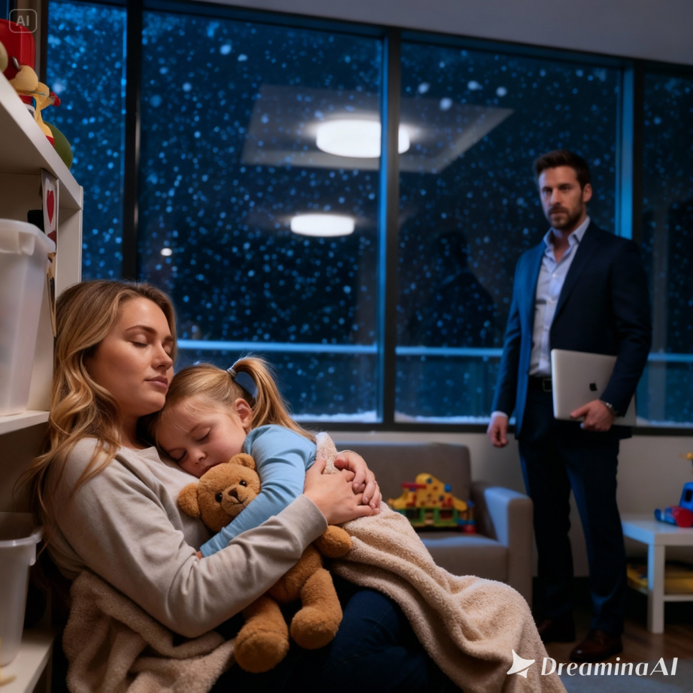 Inside, under the soft glow of the emergency lights, his five-year-old daughter slept peacefully in the arms of a woman the company rarely noticed.