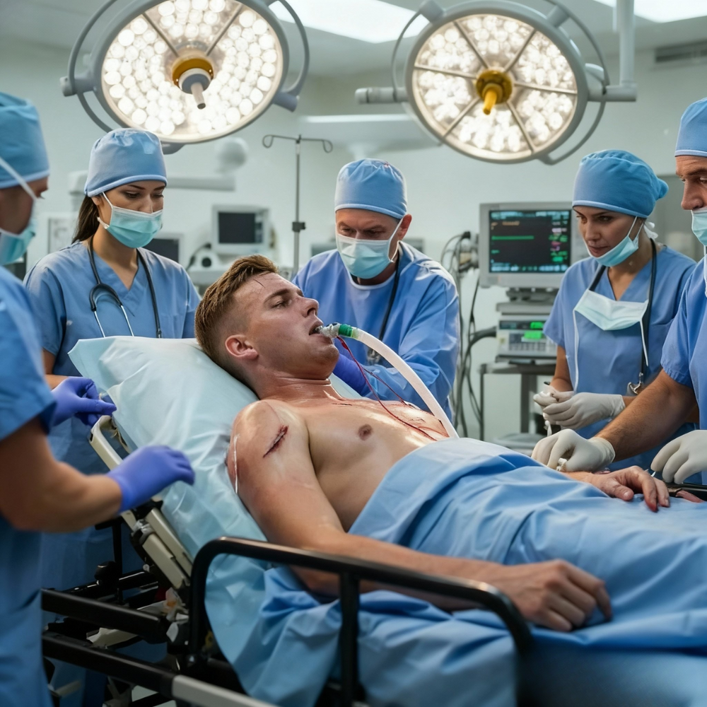 “Male, mid-twenties, multiple gunshots to the chest and abdomen,” the lead medic called. “Vitals unstable!”