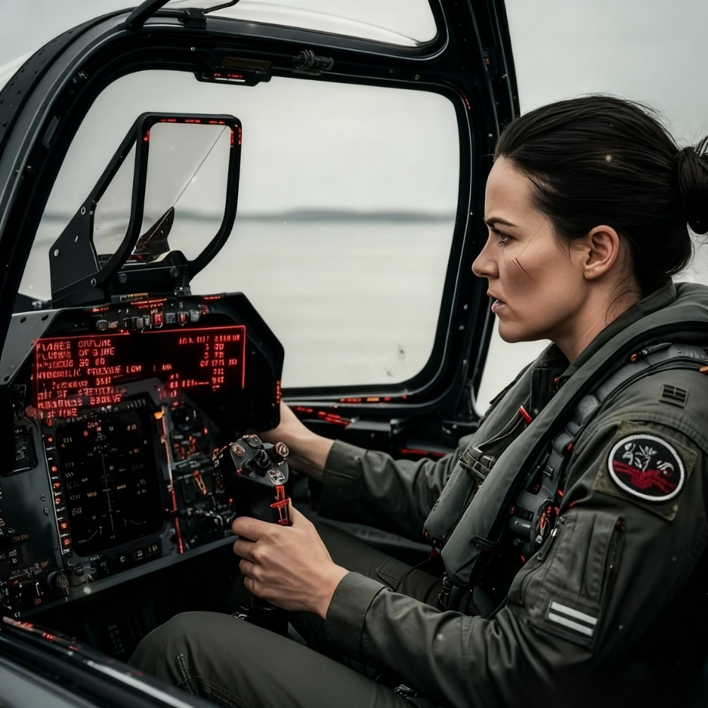 She walked across the sun-baked tarmac, the heat rising up in invisible waves. Her flight suit wasn’t zipped all the way to regulation. Her hair had worked its way free of its bun. Somewhere in the tower, someone was already starting to panic.