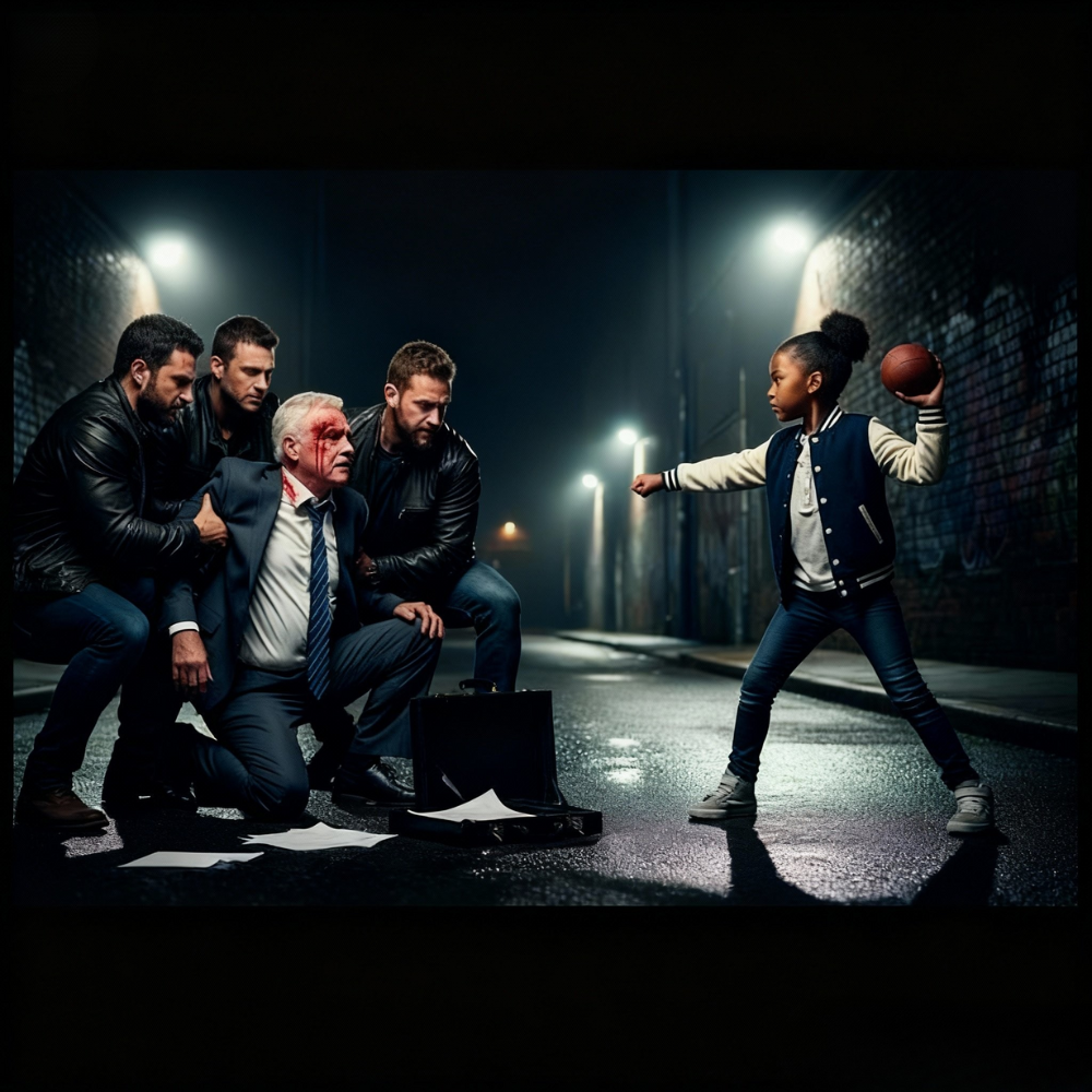 A tiny Black girl, no more than nine, swallowed up by an oversized purple jacket that hung off her shoulders like borrowed armor. One shoelace dragging. Hair in two messy ponytails. A cheap rubber ball in her hand, dingy from months of bouncing off graffiti-tagged walls.