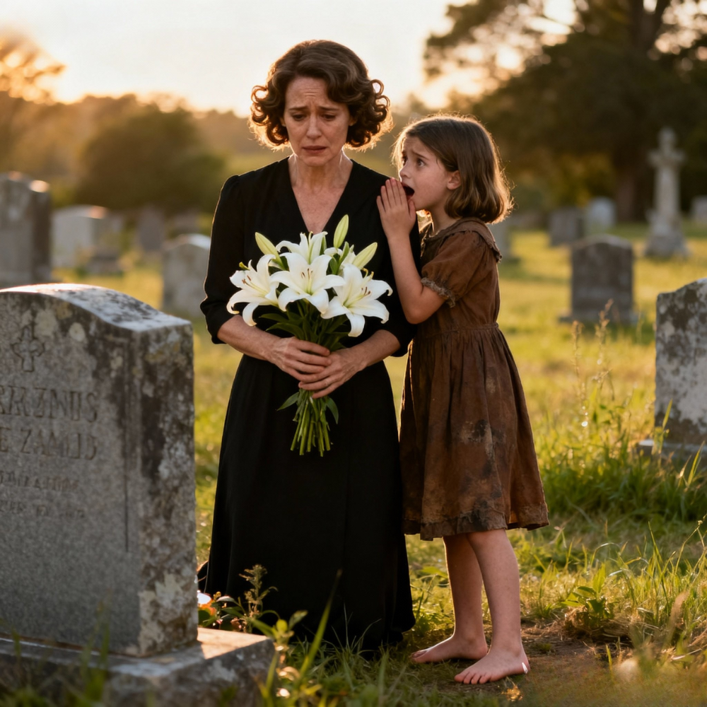 A little girl stood half-hidden behind a leaning gravestone a few yards away, watching me as if I were the one rising from the dead. She couldn’t have been older than seven. Thin arms wrapped around herself, mismatched sneakers, her curly hair tousled by the wind. She wasn’t frightened; she was studying me with eyes far too perceptive for her age. Eyes that seemed to recognize something in me I didn’t yet understand.