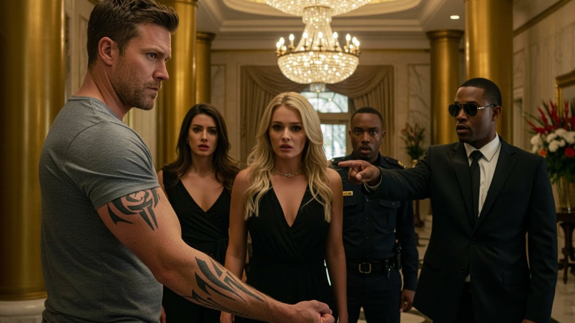 The Aurelia Grand Hotel lobby glowed like a movie set. Crystal chandeliers threw diamonds of light across polished marble. A grand American flag hung discreetly near the entrance, framed by towering glass doors that looked out onto a busy city street dotted with yellow cabs and the red-blue flash of distant squad cars. In the VIP section, velvet ropes, smoked glass, and reserved signs drew a sharp line between the people who believed they owned the world and everyone else.